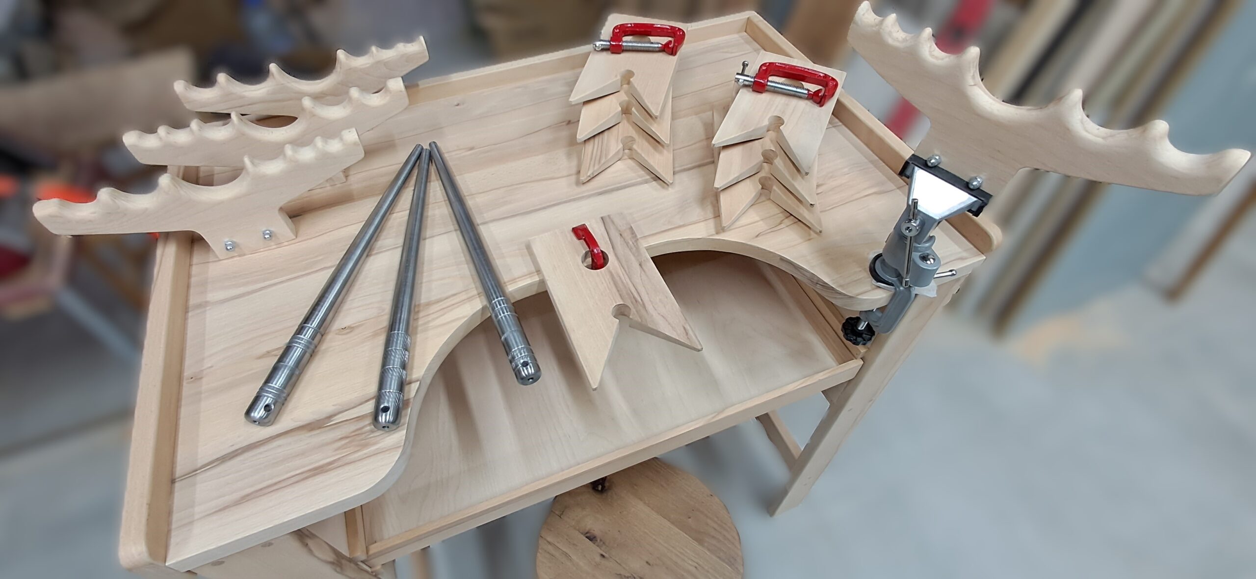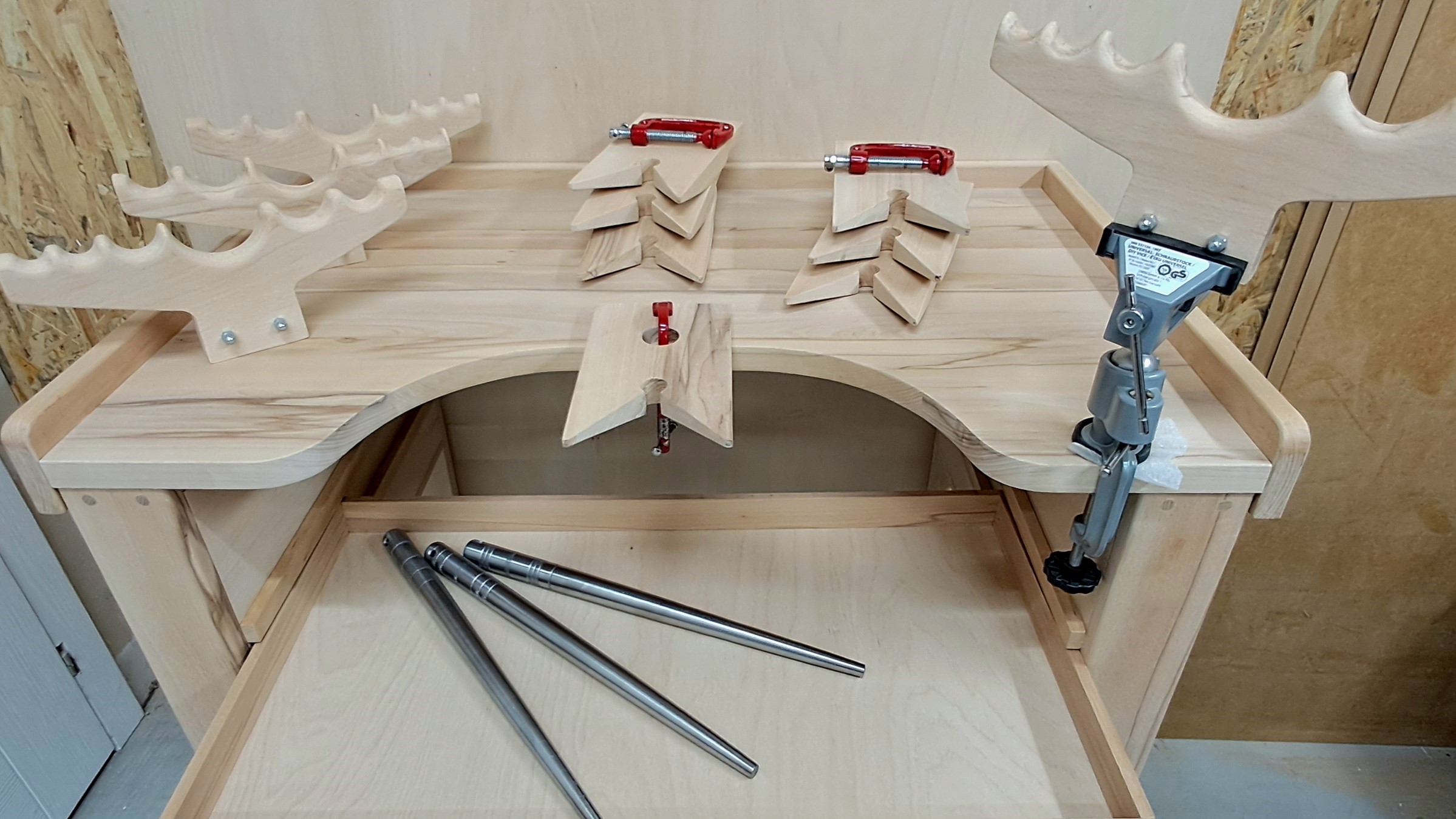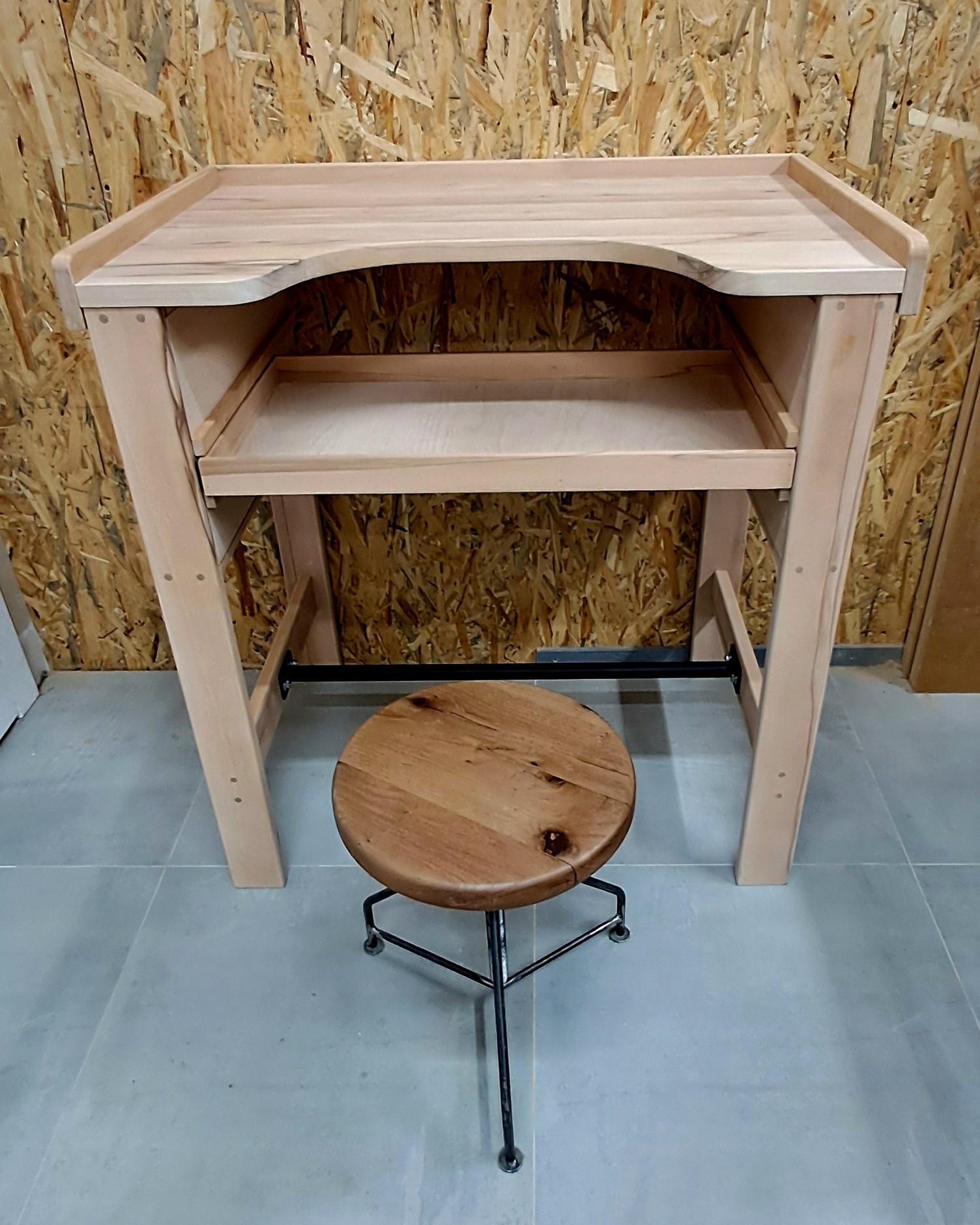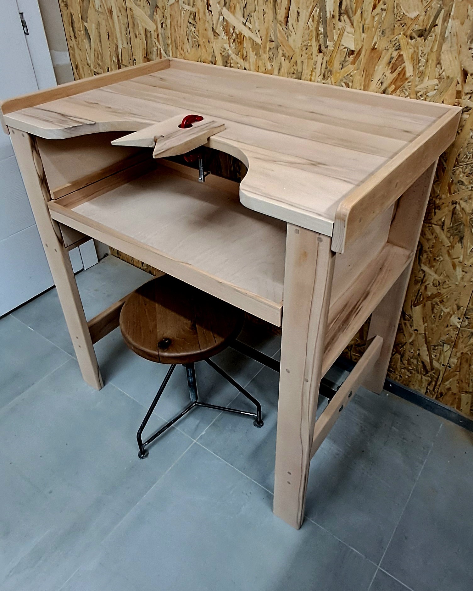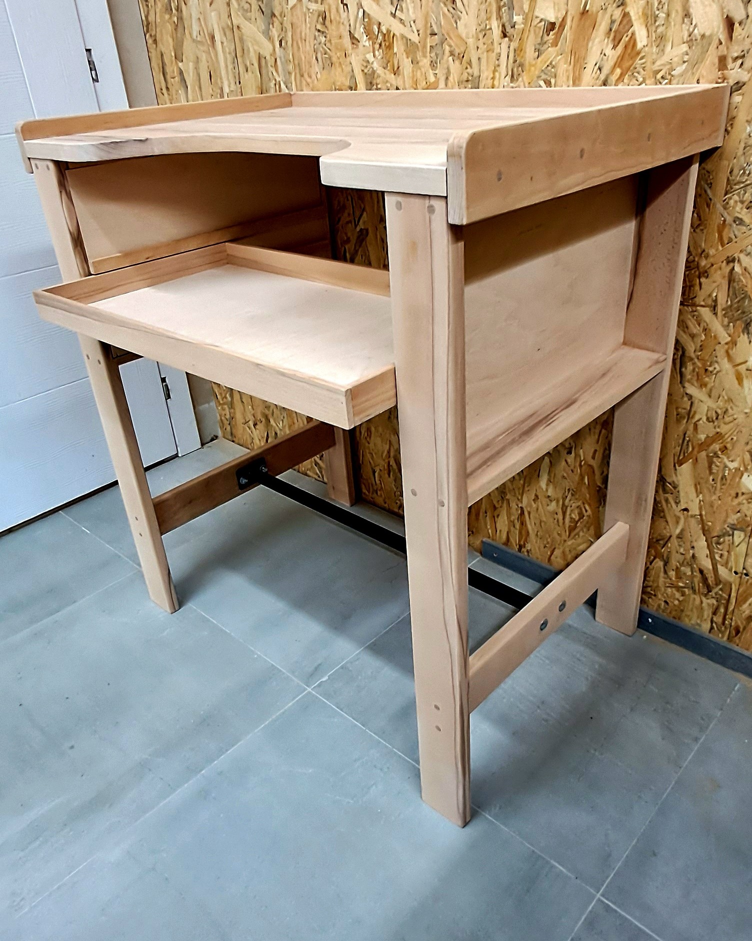 Juvelirski sto – od punog bukovog drveta, opremljen fiokom i policama sa strane za praktično odlaganje alata.